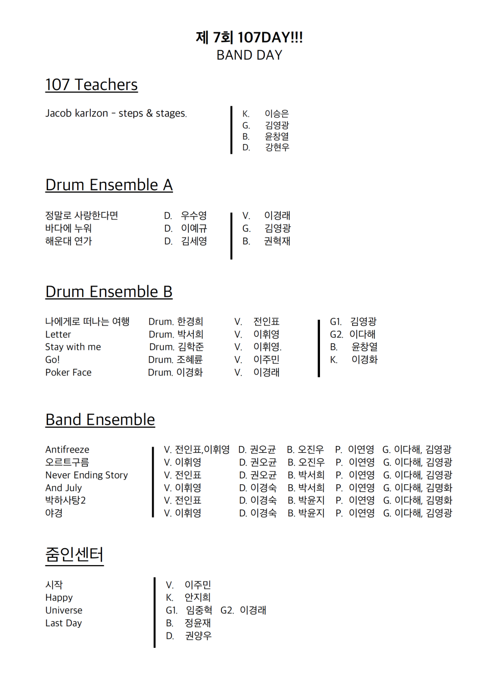 이렇게 다섯 팀의 공연으로 채워진 제7회 107Day Band Day는 성황리에 마무리되었습니다.